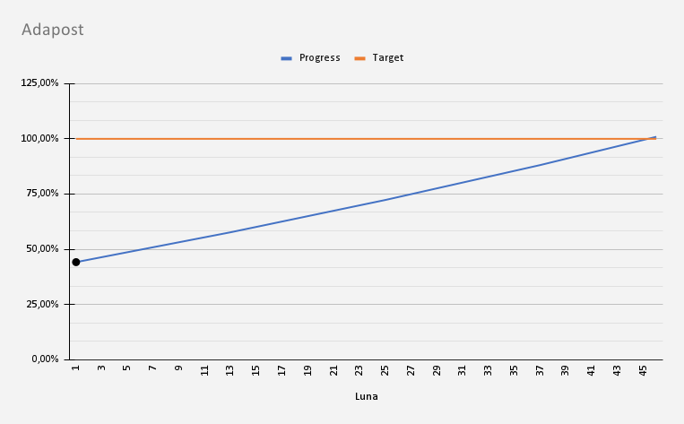 Progresul in atingerea acestui obiectiv este undeva la 18.93%. Graficul arata ca daca ma tin de treaba ca pana acum, o sa bifez acest pas in aproximativ 10 ani. Personal cred ca este cam mult, asa ca trebuie sa ma pun mai bine pe treaba.